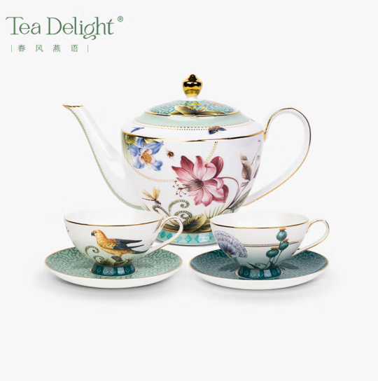 Spring Whisper Tea Set (Tea Pot + Set of Two Cups& Saucer )